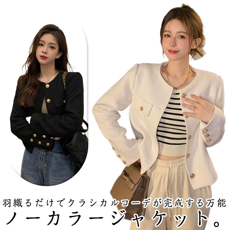 ジャケット レディース 秋冬 ノーカラー ツイードジャケット コート ショート丈 ノーカラージャケット ツイード 入学式 フォーマル おしゃれ カジュアル シンプル 上品 大人 かわいい 通 きれいめ