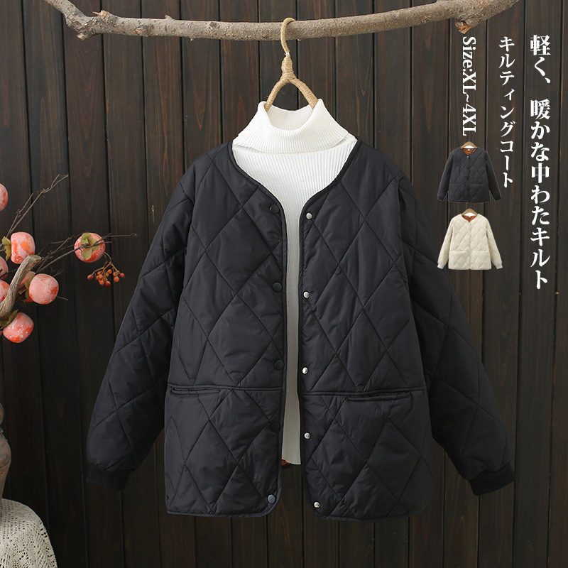 キルト コート キルティングコート キルティングジャケット レディース 秋冬 中綿 ノーカラー アウター ジャケット キルティング ショート キルトコート 羽織り 軽量 暖かい 大き 長袖