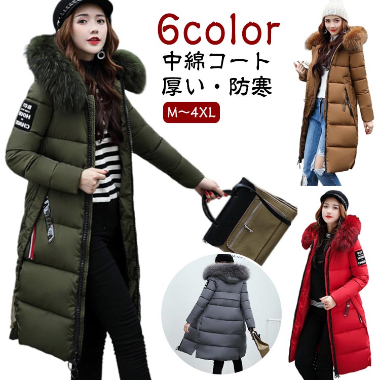 レディース 中綿ジャケット ファー 冬 中綿コート ベンチコート ダウンジャケット フード付き 中綿ロングコート コート ロング丈 防寒 中綿アウター 着痩せ 中綿入れ ロングコート 上品