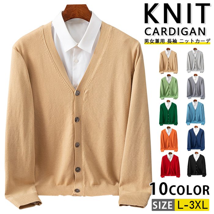 カーディガン メンズ レディース トップス ニット ネック 男女兼用 長袖 ニットカーディガン アウター カジュアル シンプル ビジネス カットソー コート ペアコート