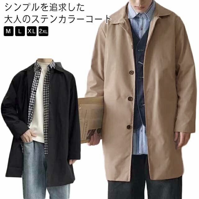 ステンカラーコート メンズ スプリングコート コート バルカラー 薄手 軽量 メンズコート ミドル丈 春 黒 ビジネスコート 膝上 仕事 軽い 男性 秋 ビジネス 防風 無地 定 通勤