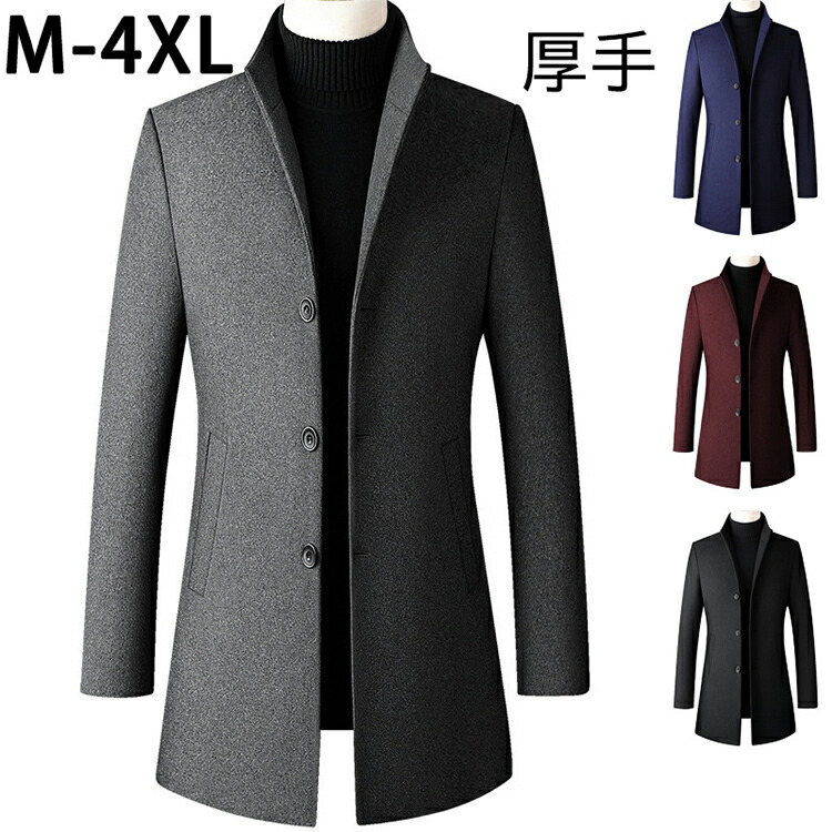 コート メンズ ロング ジャケット チェスターコート ビジネス 中綿 秋冬 ウール 厚手 大きいサイズ M L 2XL 3XL 4XL XL