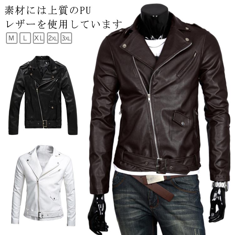 レザー革ジャンパー 革ジャン ブラック ブラウン アウター 秋春冬毛 メンズ レザーコート ホワイト クラシックPUレザー 防風 本格 ジャケット コート 革ジ ライダースジャケット
