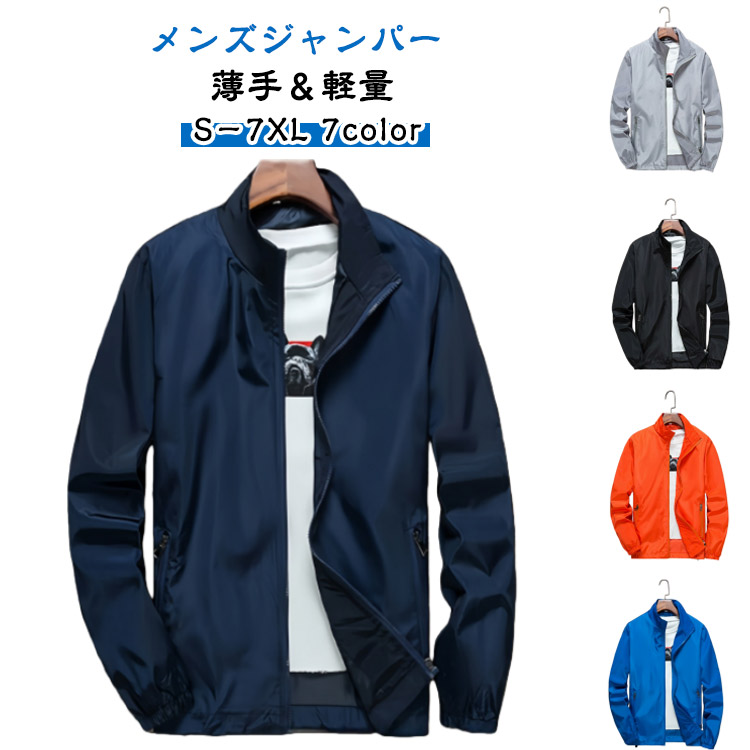 ジャンパー メンズ 薄手 ジャケット 大きいサイズ カジュアル ビジネス S-7XL ブルゾン 立ち襟 春 夏 秋 大きい ショート丈 アウター 軽量 7色 アウトドア