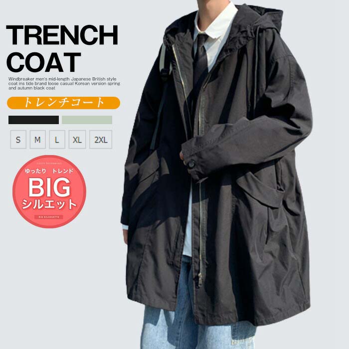 S-2XL スプリングコート メンズ カラーコート 春アウター メンズコート 春服秋服 アウター カジュアルコート ロング 通勤 フード付き ライトアウ 大きいサイズ