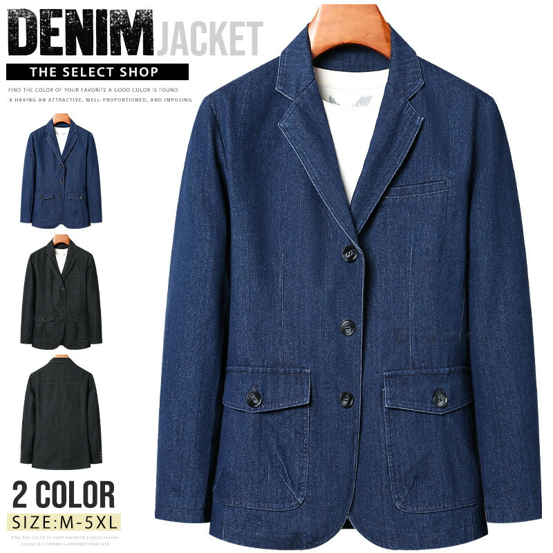 テーラードジャケット メンズ デニム アウター ブレザー デニムスーツ デニムジャケット スーツジャケット ジャンパー デニムブラザー ビジネス メンズジャケット シンプル 紳士服 30代 3つボタン