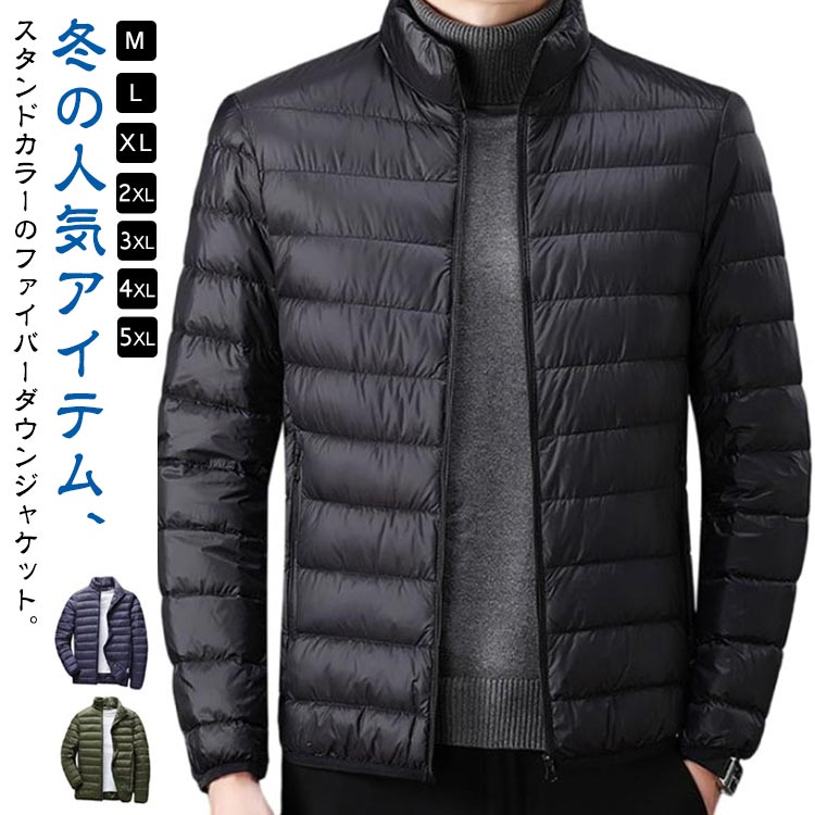 中綿ジャケット スタンドカラー 防寒 ダウンジャケット メンズ ライトダウン ジャケット 軽量 薄手 細身 立て襟 インナーダウン 暖かい ファイバーダウン インナージャケット 保温