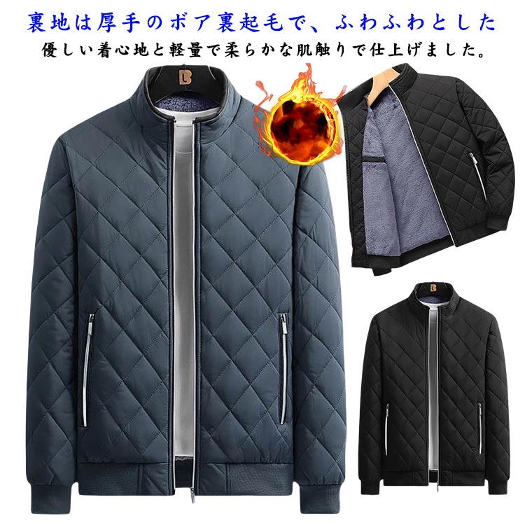 大きいサイズ 暖かい メンズ ジャケット キルティング 防寒 裏起毛 ブルゾン 冬服 アウター ボアジャケット 中綿ジャケット 中綿コート あったか ジップアップ カジュアル ジャンパー