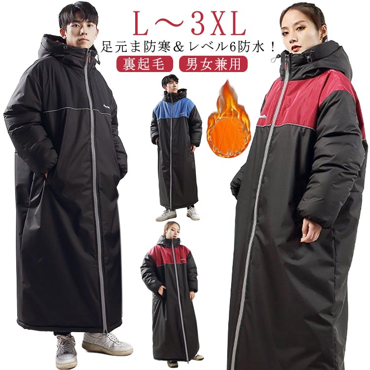 足元ま防寒&レベル6の防水 バイク ロング コート ベンチコート バイク用 ロングコート 防水 暖かい 裏ボア レディース メンズ バックジップ 光反射 防寒コート 中綿 ジャケット 男女兼 超ロング