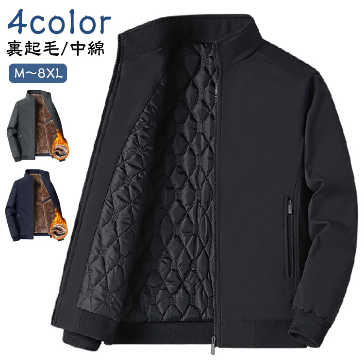 中綿 スタンドカラージャケット 裏起毛 スイングトップブルゾン ジャンパー アウター メンズ 秋冬 暖かい ジャケット ビジネス カジュアル 大きいサイズ スタンドネック ゴルフウェア 厚手 コート