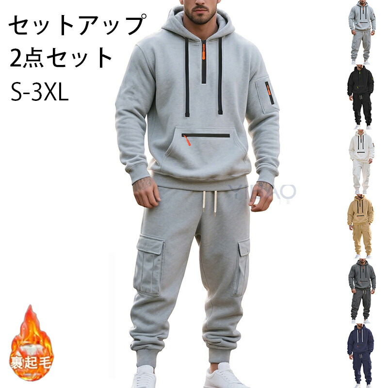 セットアップ 上下セット メンズ ビッグサイズ ルーズフィット アメカジ ワークウェア 裏起毛 保温 防寒 フード付き スポーツ カジュアル 部屋着 普段使い 秋冬 無地 寒さ対策 お出かけ