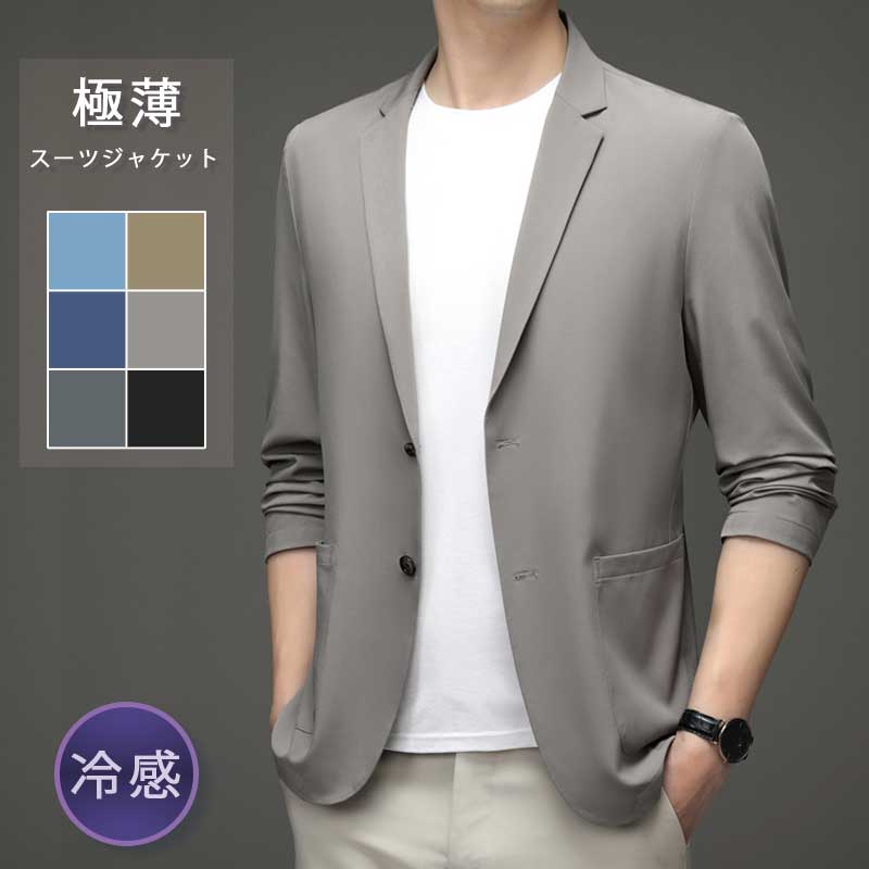 接触冷感 サマージャケット メンズ 薄手 ジャケット UPF50+ テーラードジャケット 長袖 涼しい 吸汗速乾 通気 裏地無し 夏ジャケット ビジネス 紳士服 カジュアル テレワー ブレザー