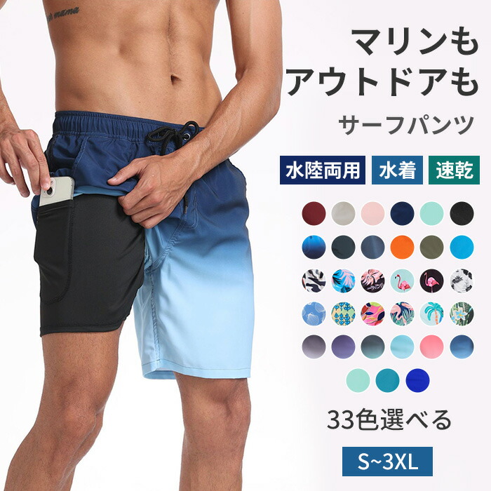 S-3XL 33色展開 水着 メンズ インナー付き 水陸両用 海パン サーフパンツ 裏地付き UVカット ハーフパンツ ボードショーツ 吸汗速乾 体型カバー ラッシ ショートパンツ