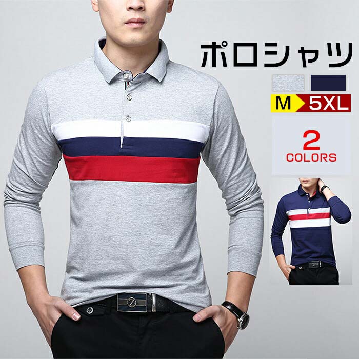 ポロシャツ メンズ トップス 大きいサイズ 長袖 ストライプ柄 Tシャツ トレンド ゴルフウェア おしゃれ スポーツ 春秋冬 ゴルフ 紳士服 カジュアル 6色 シャツ