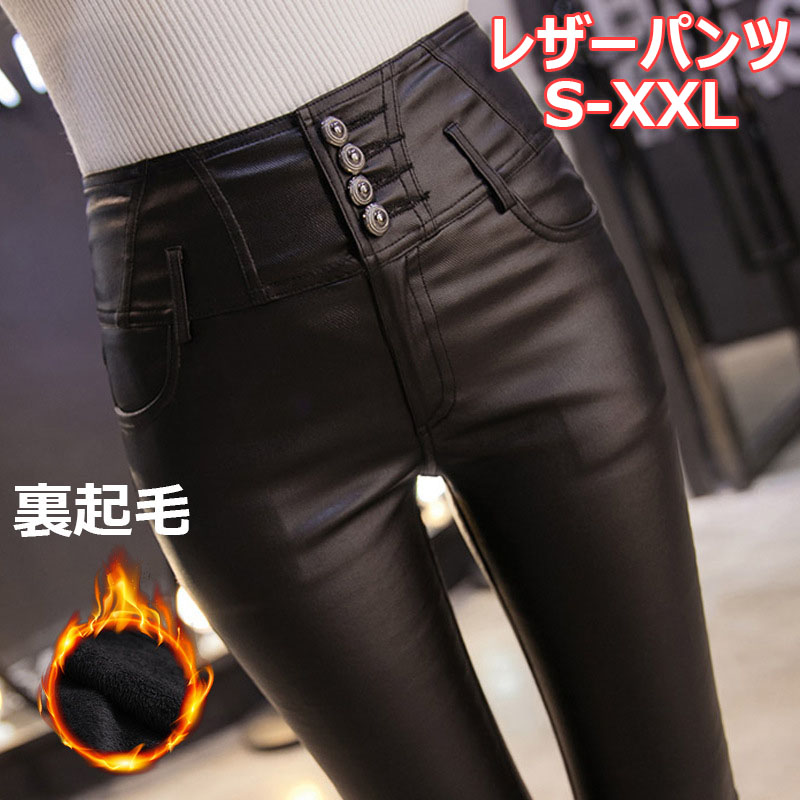 レザーパンツ レディース PU スキニー パンツ ボトムス スリムパンツ ハイウエスト 長ズボン 裏起毛 細身 合皮 裏ボア 秋 冬 フェイクレザー 革パンツ レザー レギンス 美 尻 脚 防水