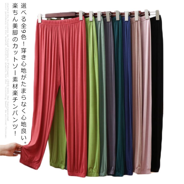 選べる全9色 カットソー素材 ヨガパンツ リラックスパンツ レディース ワイドパンツ サルエルパンツ ロングパンツ 楽チンパンツ イージーパンツ ルームウエア 部屋着 無地 薄手 モーダル シンプル