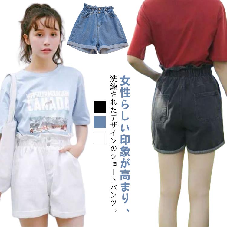 レディース デニムパンツ ショートパンツ ゆったり 短パン ジーンズ ロールアップ ショーパン ハイウエスト 美脚 ショーツ ホットパンツ お洒落 カジュアル ポケット付き ウエストゴム