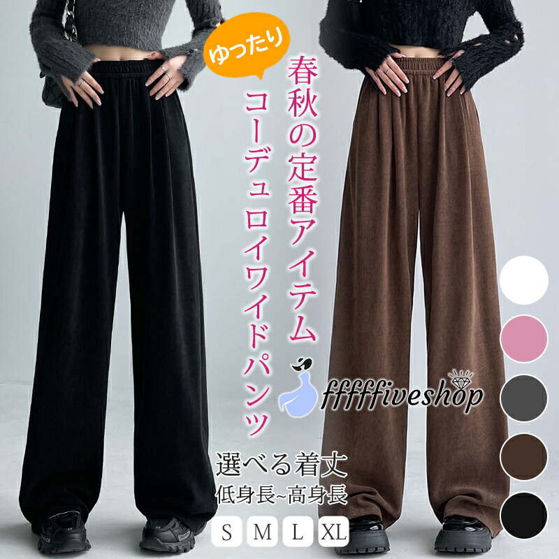 コーデュロイ パンツ レディース ワイドパンツ 春 夏 リブパンツ イージーパンツ プリーツパンツ コーデュロイワイドパンツ ワイド きれいめ 高身長 低身長 ストレートパンツ