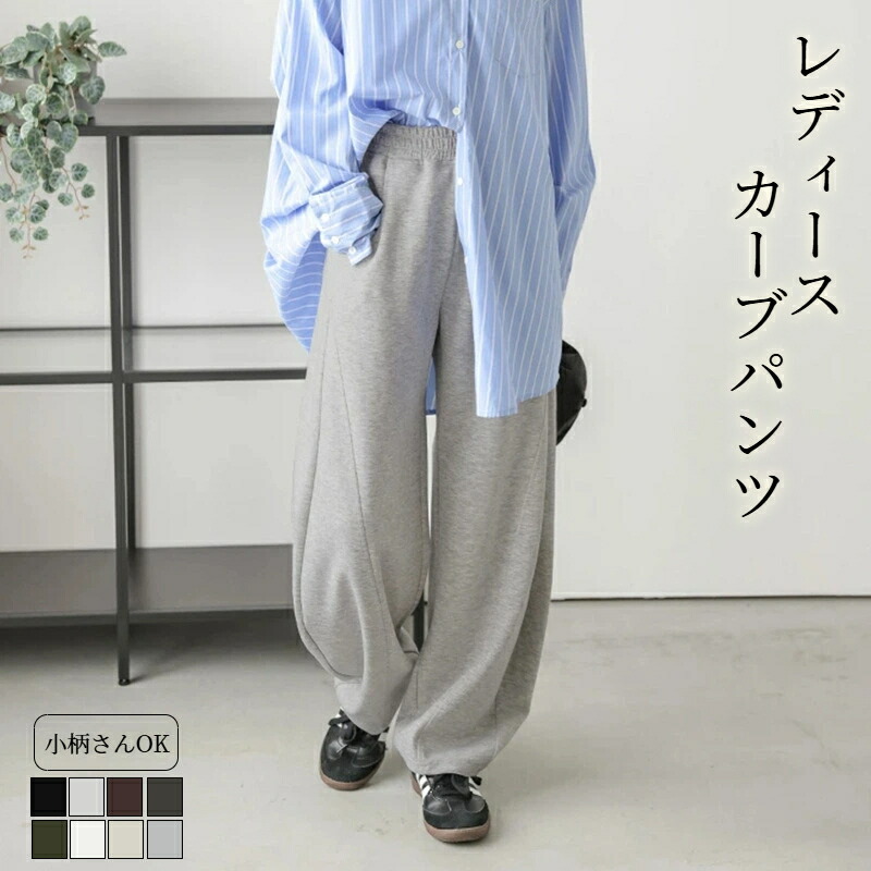 秋冬 新作 レディース ワイドパンツ パネルライン カーブパンツ 小柄さん スタイルアップ きれいめ デイリー オフィスカジュアル 上品 シンプル レギュラー丈 スウェット ゆったり 脚長