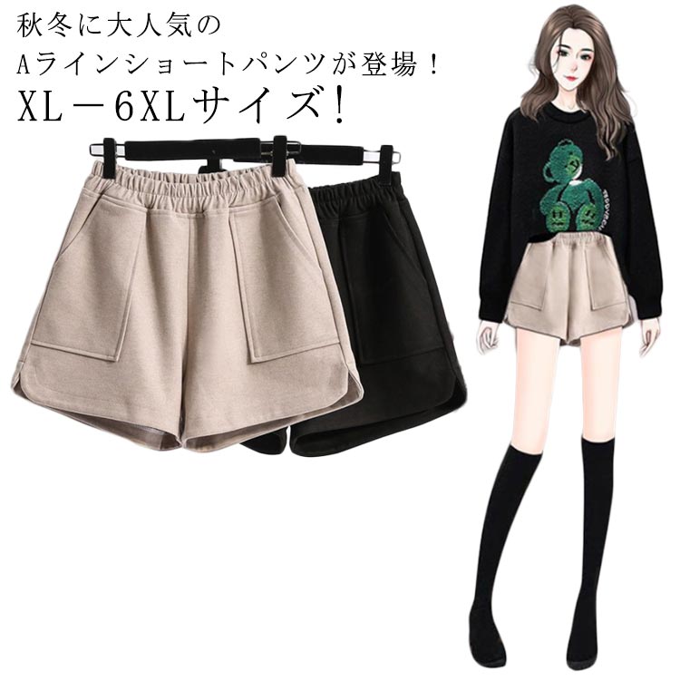 ショートパンツ 短パン 厚手 レディース 秋冬 ワイドパンツ Aライン きれいめ ボトムス 暖かい 3分丈 ワイドショートパンツ 大きいサイズ 美脚 おしゃれ ウエストゴム 大人 30代 4 シンプル