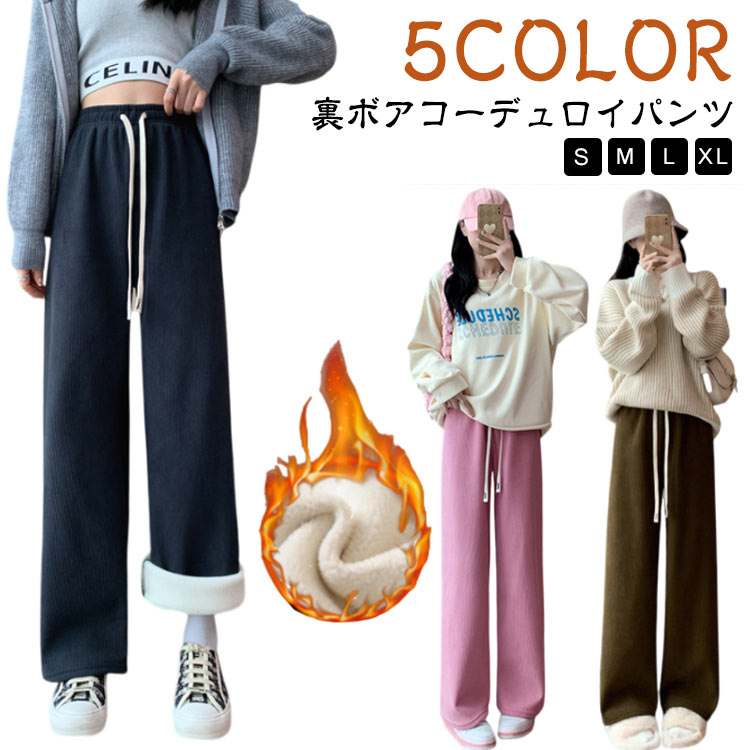 ズボン 秋冬 レディース コーデュロイパンツ 裏ボア 暖かい ゆったり ワイドパンツ ストレート ハイウエスト 防寒 着痩せ カジュアル 裏起毛 ボトムス 保温 おしゃれ 通学 無地 ウ 通勤