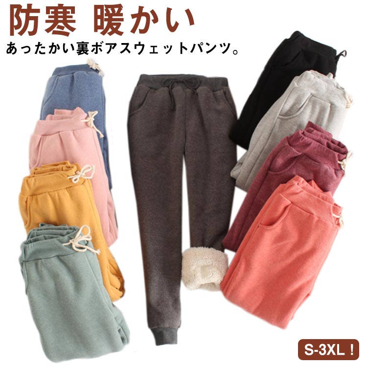 -4!ロングパンツ スウェット レディース 裏ボア 防寒パンツ ボトムス モコモコ 厚手 保温 あったか スポーツ