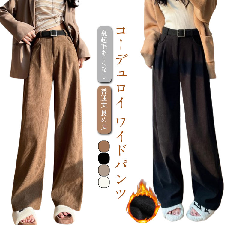レディース パンツ 通勤 秋冬 コーデュロイ 裏起毛あり なし ロングパンツ ガウチョパンツ ワイドパンツ ゆったり カジュアル 無地 長ズボン ボトムス ストレートパンツ 普通丈 長め丈 きれいめ