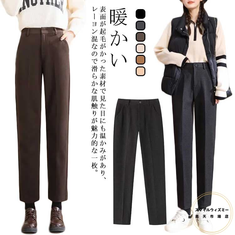 オフィス 暖かい テーパードパンツ ボックス レディース カット起毛ピンタックパンツ パンツ アンクル OL 暖パン 防寒 フォーマル 通勤 XL ストレッチ ハイウェスト 着 せ 冬服 ストレート
