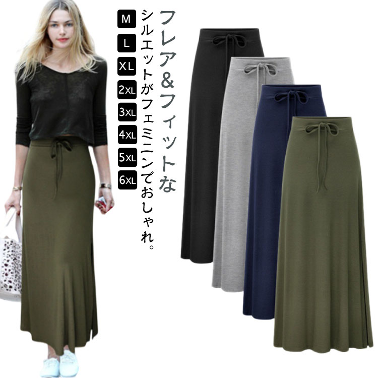 送料無料 春夏 ロング丈スカート スリットスカート マーメイド マキシ丈スカート フレアスカート オフィスカジュアル ウェストゴム