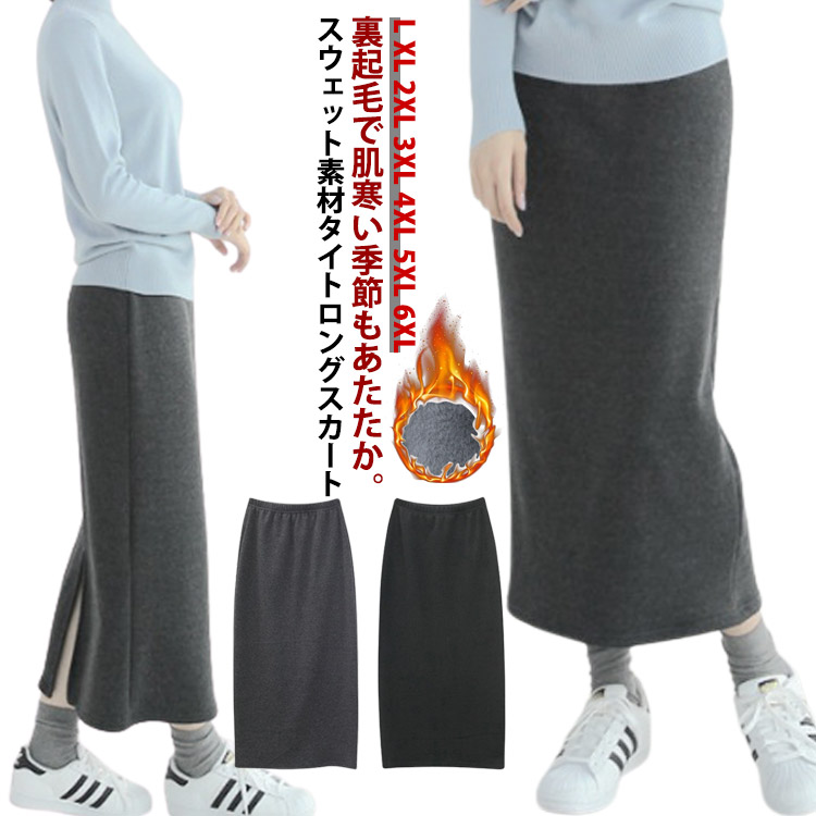 タイト スカート 裏起毛 裏起毛スカート サイドスリット ロング レディース ウエストゴム ボトムス ロングタイトスカート 裏ファー スエット タイトスカート 大きいサイズ ストレッチ ロ スウェット