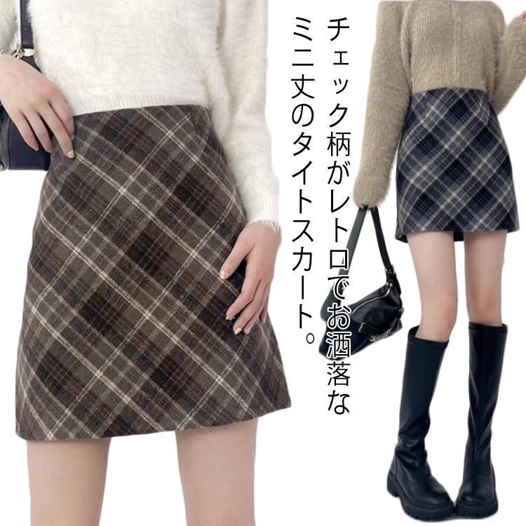 レディース 秋 チェック タイトスカート 冬 裏地付き カジュアル 膝上丈 Aライン ウール風生地 きれいめ ガーリー おしゃれ デート フェミニン レトロ ミニスカ 着回し 普段着 ミニ お出かけ