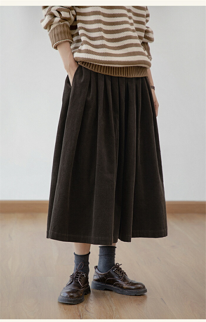 コーデュロイスカート レディースファッション ボトムス 秋冬 快適 防寒 大人 カジュアル
