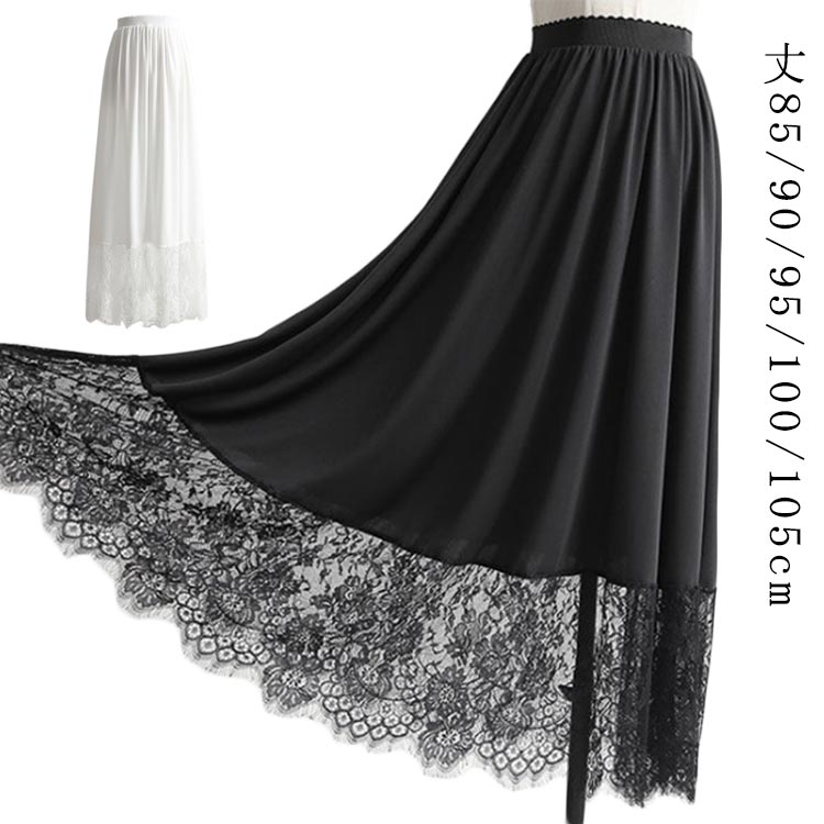 ペチコート スカート レディース ロング丈 ぺチスカート 裾レース 透けない 静電気防止 透け防止 ドレス ワンピース インナー レイヤード 重ね着 インナースカート