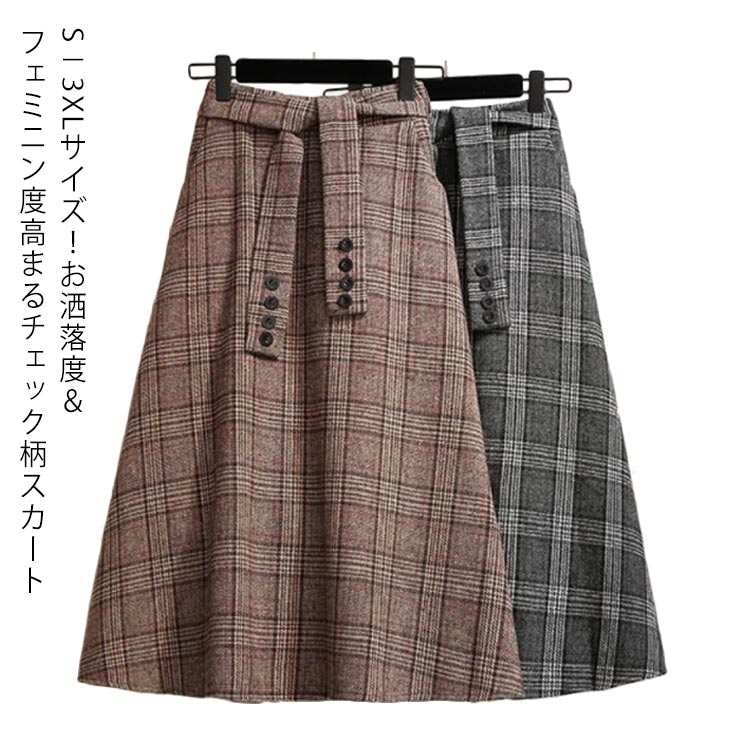 ゆったり チェックスカート カジュアル 暖かい Aライン マキシ丈 フレアスカート ロング丈 スカート 秋 大きいサイズ マキシ 冬
