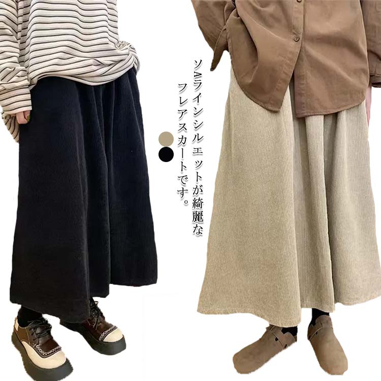 フレアスカート レディース コーデュロイスカート ロングスカート 秋冬 ボトムス 着回しやすい