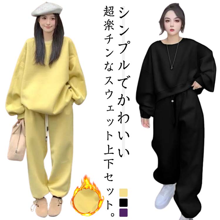 上下セット 裏ボア スエット スウェット ルームウェア レディース 2点セット 暖かい 裏起毛 パジャマ 防寒 おしゃれ あったか 部屋着 セットアップ トレーナー 上下 ボア パンツ ジョガーパンツ
