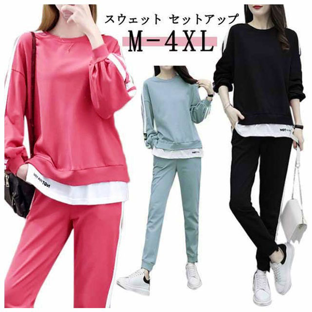 スウェット セットアップ ジャージ 長袖 レディース 部屋着 上下 セット 大きいサイズ スウェットパンツ ルームウェア ライン 大きい 薄手 黒 トップス 修学旅行 産後 旅行 スポーツウェア 入院