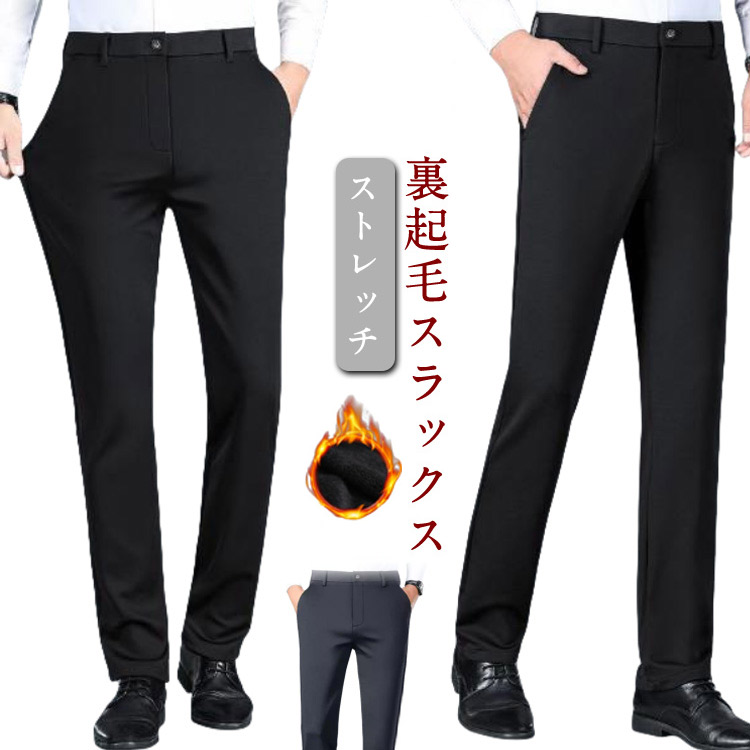 スラックス 裏起毛 裏ボア スリム ビジネス スーツ パンツ ズボン ストレッチ ストレートパンツ 暖かいパンツ ボアパンツ