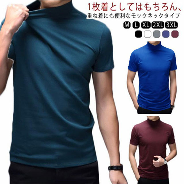 ハイネック tシャツ メンズ 半袖 無地 カットソー 夏 モックネック ハイネックtシャツ ゴルフ ゴルフウェア カジュアル シンプル ビジネス 普段着 夏服 定番 オフィス