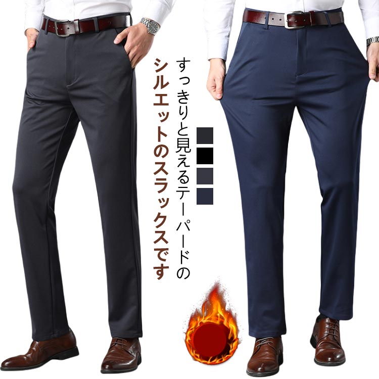 スラックス メンズ 秋冬 ストレッチ素材 スリム 裏起毛 ロングパンツ ウォッシャブル 大きいサイズ