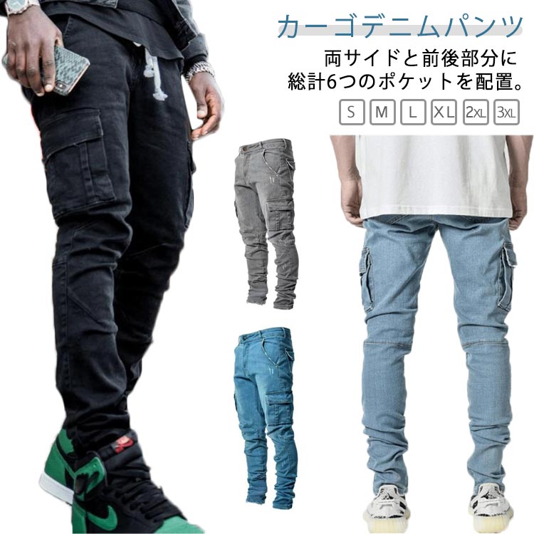 カーゴデニムパンツ デニムパンツ メンズ デニム ストレッチパンツ ロング丈 スキニーデニム ロング ジーパン ジーンズ カーゴパンツ ジョガーパンツ テーパード ロングパンツ 春 夏 秋