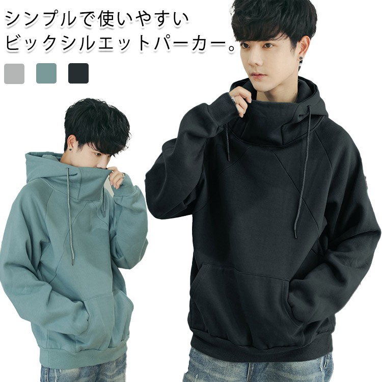 パーカー メンズ 大きいサイズ プルオーバー スウェット 長袖 無地 おしゃれ ボリュームネックパーカー ストリート系