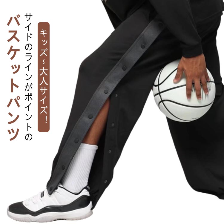 バスケットボールパンツ スナップボタン メンズ バスケットパンツ バスパン ジュニア レディース 裾ボタン サイドボタン 大人 キッズ 長ズボン 男の子 ジャージ 女の ロングパンツ
