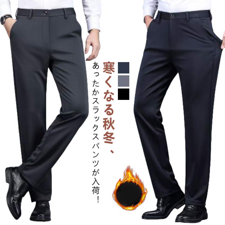 送料無料 裏起毛 スラックス メンズ 秋冬 パンツ 暖かい ストレッチ ストレートパンツ 伸縮性 おしゃれ 暖パン あったか