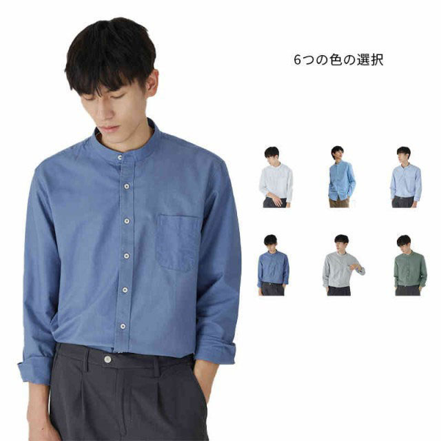 シャツ 無地 オックスフォードシャツ メンズ 長袖シャツ バンドカラー スタンドカラー 父の日 通販 春服 春用 プレゼントに最適
