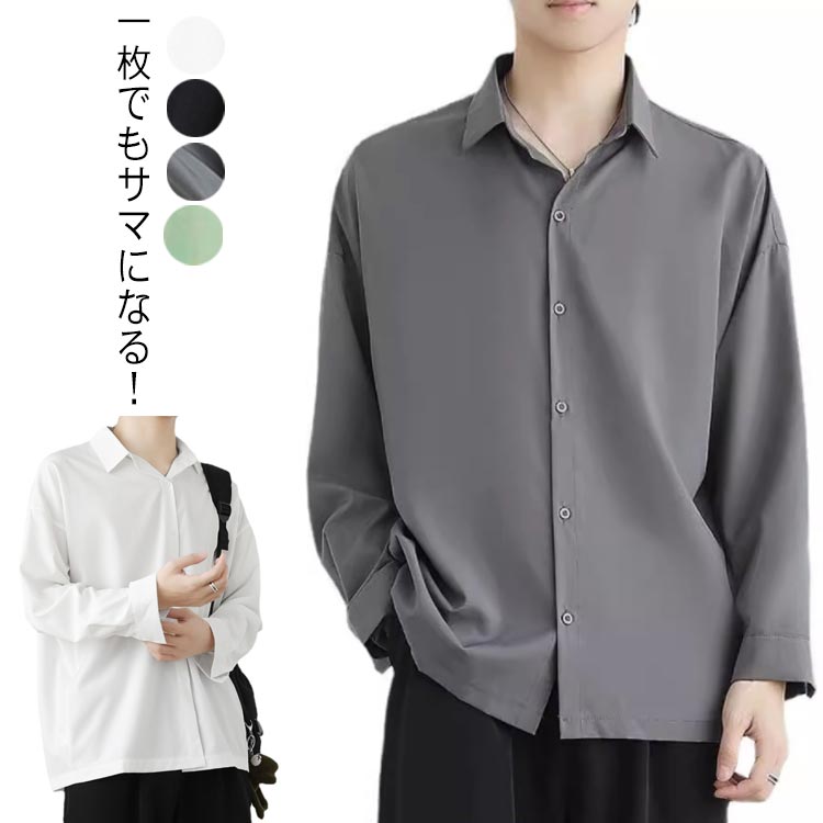 シャツ オフィスカジュアル とろみシャツ メンズ 長袖シャツ カジュアルシャツ レギュラーカラー ドレープ メンズシャツ トップス メンズファッション きれいめ 無地 春服 おしゃれ
