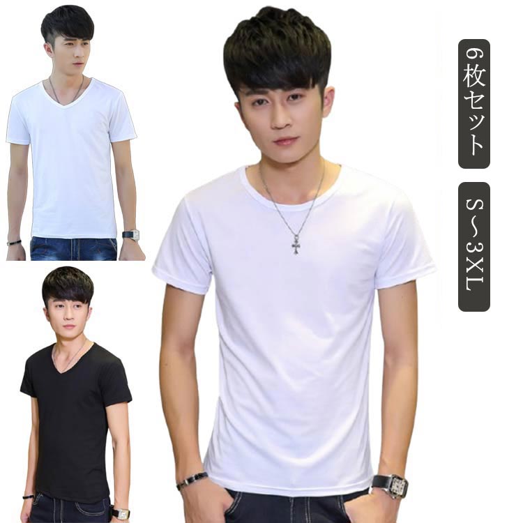 男性用 半袖 肌着 V首 アンダーシャツ Vネック メンズ インナーシャツ 6枚セット 丸首 下着 大きいサイズ 紳士 Tシャツ Uネック コットン 無地 定番 シンプル 黒