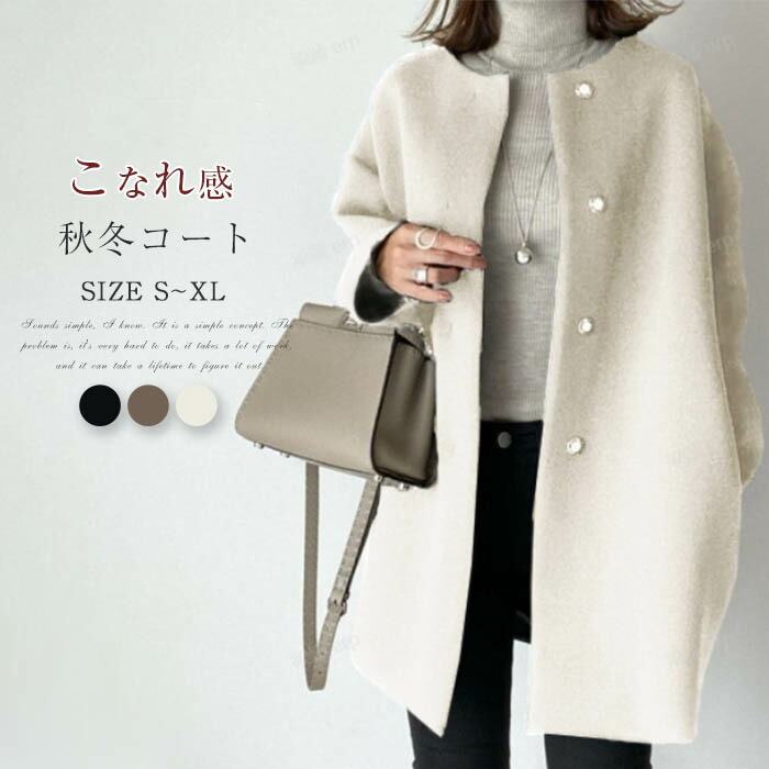 レディース 秋冬 ミドル丈コート ノーカラー コート ノーカラーコート ドロップショルダー アウター レディースコート ミセス エレガント シンプル 春 秋 冬 通勤 厚手 大人女子 前開き 羽 防風
