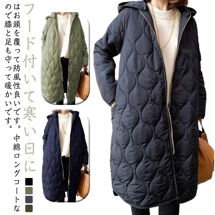 キルティングコート レディース 中綿コート あったか 秋 冬 防寒ジャケット 暖かい ロング フード付き