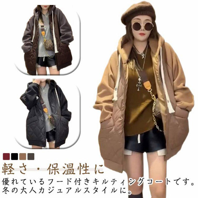 コート キルティング フード付き 長袖 軽量 冬 中綿コート ジャケット レディース アウター 大きいサイズ ゆったり 防寒 通勤 キルティングアウター お洒落 ロングコート 秋冬